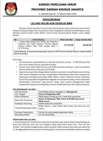 PENGUMUMAN LELANG WAJIB NON EKSEKUSI BMN