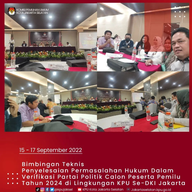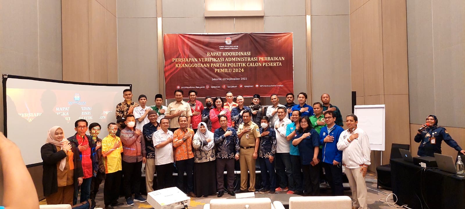 Selasa 20 September 2022, KPU Kota Jakarta Selatan menyelenggarakan Rapat Koordinasi Persiapan Verifikasi Administrasi Perbaikan keanggotaan partai politik Calon Peserta Pemilu Tahun 2024 di Ruang Pandawa 2, Hotel RA Suite Simatupang, Jakarta Selatan Pukul 12.00 wib s.d Selesai. Kegiatan dihadiri oleh Anggota KPU Provinsi DKI Jakarta, Asisten Pemerintah Kota Jakarta Selatan, Bawaslu Jakarta Selatan, Polres Metro Jakarta Selatan dan Partai Politik Calon Peserta Pemilu Tahun 2024 Se-Kota Jakarta Selatan. Acara diawali dengan menyanyikan lagu Indonesia Raya, kemudian Sambutan dari Ketua KPU Kota Jakarta Selatan, Aspem, dan Anggota KPU Provinsi DKI Jakarta, serta Anggota KPU Kota Jakarta Selatan Divisi Teknis Penyelenggaraan selaku Pemateri. Bapak Dody memberikan informasi terkait proses Verifikasi Administrasi Perbaikan serta elemen yang perlu diperbaiki dalam SIPOL. Selain itu, Bapak Barizi memberikan tambahan terkait Typho eror yang dilakukan Operator Partai Politik, sehingga perlu di perhatian untuk diperbaiki, terutama terkait NIK agar dapat ter Verifikasi dengan data dukcapil,serta Terkait Pekerjaan dimana PNS tidak dapat menjadi anggota Partai dan lebih detil pada status Pekerjaan guru dan dosen.
