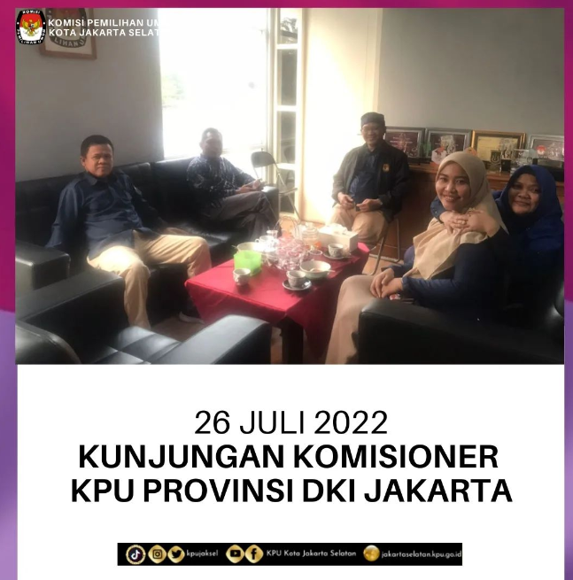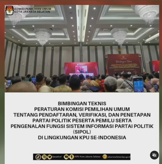 Komisioner Divisi Teknis Penyelenggaraan Pemilu, Bapak Dody Wijaya, Divisi Data dan Informasi Bapak Ahmad Barizi, Ka Subbag Teknis dan Partisipasi Masyarakat, serta Operator SIPOL mengikuti kegiatan Bimtek Peraturan Komisi Pemilihan Umum Tentang pendaftaran, Verifikasi, dan Penetapan Partai Politik Peserta Pemilu serta Pengenalan Fungsi Sistem Informasi Partai Politik (SIPOL) di Lingkungan KPU Se-Indonesia pada tanggal 23-25 Juli 2022 dengan Jumlah peserta 2.260 orang yang terbagi atas 3 tempat. KPU Kota Jakarta Selatan bersama KPU Se DKI Jakarta menempati Hotel Harris Vertu Harmoni dan dilakukan secara terhubung Diantara ketiga tempat tersebut. Dalam Pembukaan Acara, Ketua KPU menjelaskan secara garis Besar PKPU Verifikasi Partai Politik terkait proses Verifikasi Administrasi oleh KPU RI, sementara itu KPU provinsi, Kabupaten/Kota melakukan Verifikasi Faktual, pengurus dan keanggotaan di regional masing-masing. Selain itu juga membahas sipol versi terbaru.