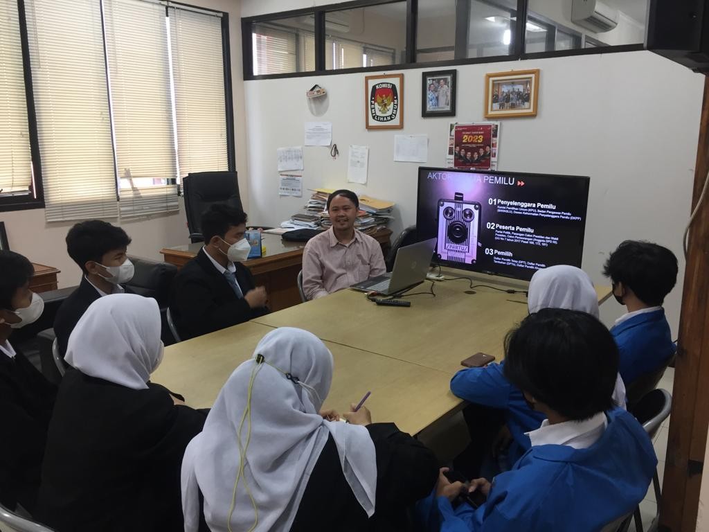 Jakarta Selatan, Senin 21/2/22 Komisioner KPU Kota Jakarta Selatan Divisi Hupmas, Bapak Fahmi Zikrillah memberikan materi terkait kepemiluan secara umum dan mengenai informasi terkait aktor-aktor dalam Pemiku secara khusus. Kegiatan ini merupakan bagian dari rangkaian program terbaru dari KPU kota Jakarta Selatan. Dimana, KPU kota Jakarta Selatan memiliki program denga tema: "Magang Kepemiluan" (M.Kn). Kegiatan "Magang Kepemiluan" ini rencananya akan berlangsung selama dua bulan, di mana setiap pekannya akan diisi oleh narasumber dan materi materi yang berbeda seputar Kepemiluan. Materi materi program M.Kn disampaikan kepada para siswa SMK yang sedang melakukan kegiatan magang di kantor KPU kota Jakarta Selatan. Tujuan kegjatan tersebut adalah memberikan pemahaman kepada para peserta magang terkait isu isu yang berkaitan dengan Pemilu, demokrasi dan data pemilih. Selaku pemateri pada program M.kn yang kedua kalinya telah diselenggarakan ini, Fahmi berharap bahwa setelah menyelesaikan program magang nantinya, seluruh peserta magang tidak hanya menguasai skill teknis yang berhubungan dengan perkantoran, namun diharapkan para siswa peserta magang juga memiliki kesempatan untuk memperoleh informasi informasi mengenai kepemiluan dan demokrasi yang sedang berkembang di negara Indonesia.