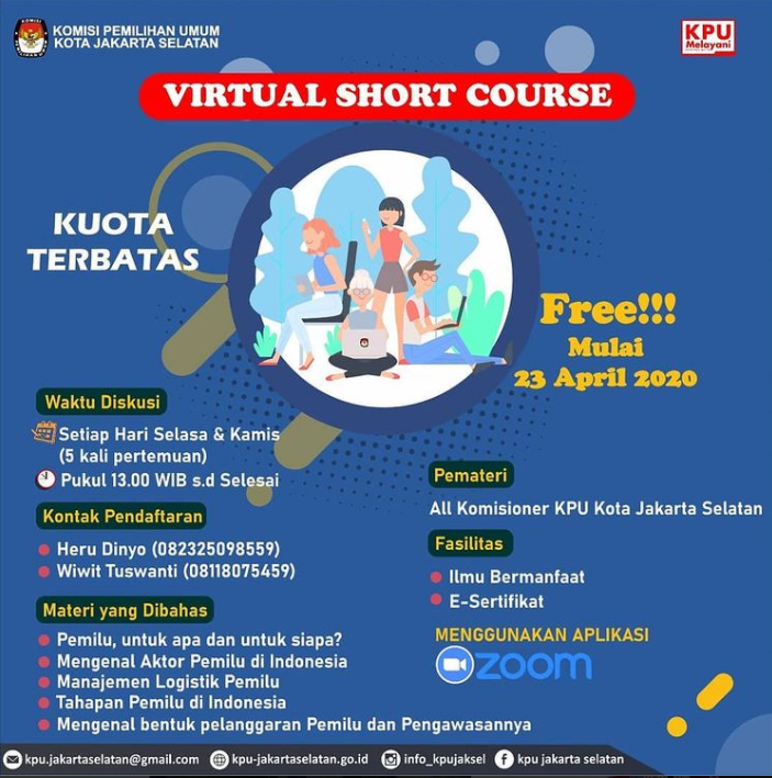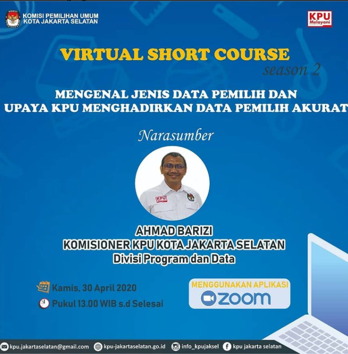 “Ini adalah satu satu program secara nasional KPU RI kepada KPU se-Indonesia, termasuk KPU Kota Jakarta Selatan. Kegiatan ini digelar dalam rangka mensosialisasikan kepada kawula muda atau kaum millenial, untuk berperan aktif datang ke TPS dan ikut memilih calon pemimpin kita,” tuturnya.